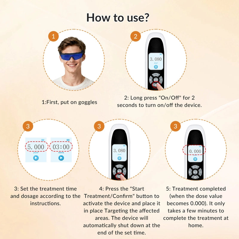 I can't say enough good things about this Cold Light Therapy Machine (LLLT). It's one of those rare devices that actually makes a real difference -it's my favorite now! Ithelped me in 3 session to reduce the pain in the joints and I truly believe more people should know about this devise! I' ve struggled with pain in my knees. But this little device has brought me relief quickly. I never thought was possible: no pills, no injections! It's like giving your body the healing boost it's been waiting for and after just a few sessions, I started feeling better. No pills, no hospitals, just light and time! It combines 980nm, 810nm, and 660nm wavelengths to target pain at every level: surface tissues, muscles, and even deep joints. Do your research on the waves -you will find many interesting info!
