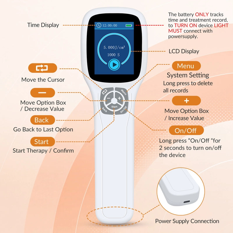 I can't say enough good things about this Cold Light Therapy Machine (LLLT). It's one of those rare devices that actually makes a real difference -it's my favorite now! Ithelped me in 3 session to reduce the pain in the joints and I truly believe more people should know about this devise! I' ve struggled with pain in my knees. But this little device has brought me relief quickly. I never thought was possible: no pills, no injections! It's like giving your body the healing boost it's been waiting for and after just a few sessions, I started feeling better. No pills, no hospitals, just light and time! It combines 980nm, 810nm, and 660nm wavelengths to target pain at every level: surface tissues, muscles, and even deep joints. Do your research on the waves -you will find many interesting info!