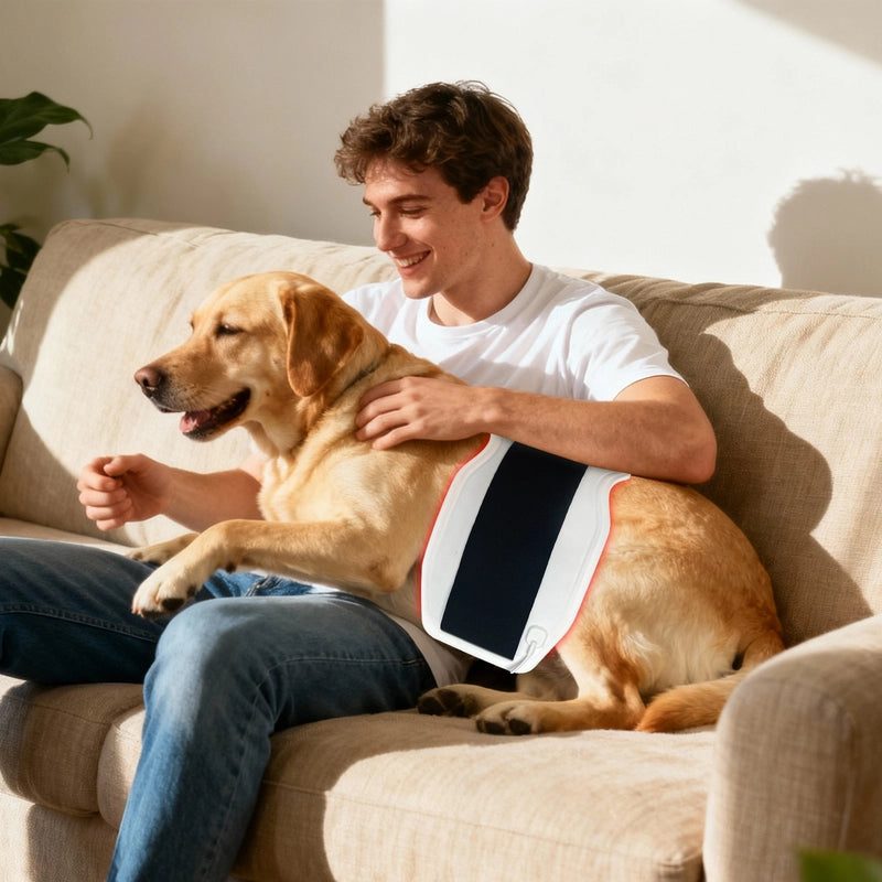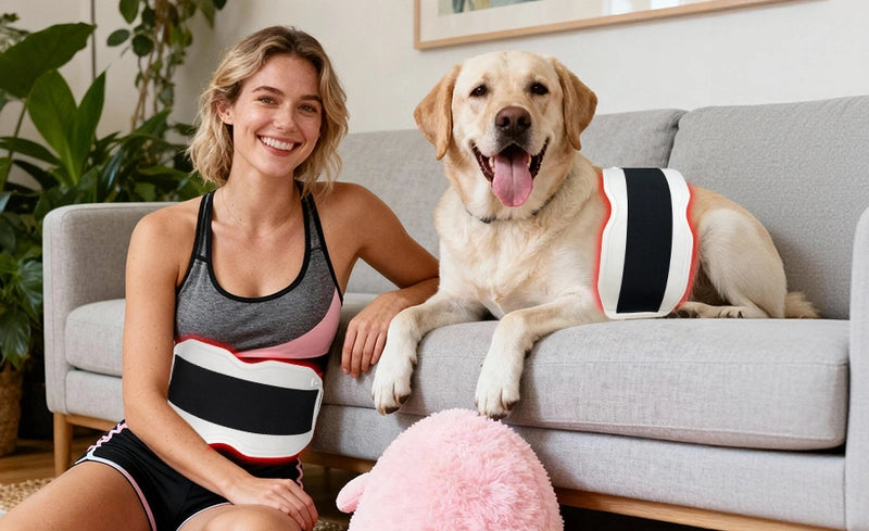 The red light therapy belt (wearable, professionally engineered with comfortable neoprene for humans) can be easily wrapped around multiple areas—pets' waist, back, shoulders, hips and other parts needing relief, as well as humans' waist, abdomen, shoulders and legs—boasting a large area and powerful light combo; for pets, it treats acute/chronic injuries, sprains, strains, arthritis, swelling from back disc issues and musculoskeletal abnormalities, and aids post-surgery skin tissue regeneration, while for humans, it supports circulation, enhances cellular performance, eases muscle tension and helps with pain management and tissue healing.
